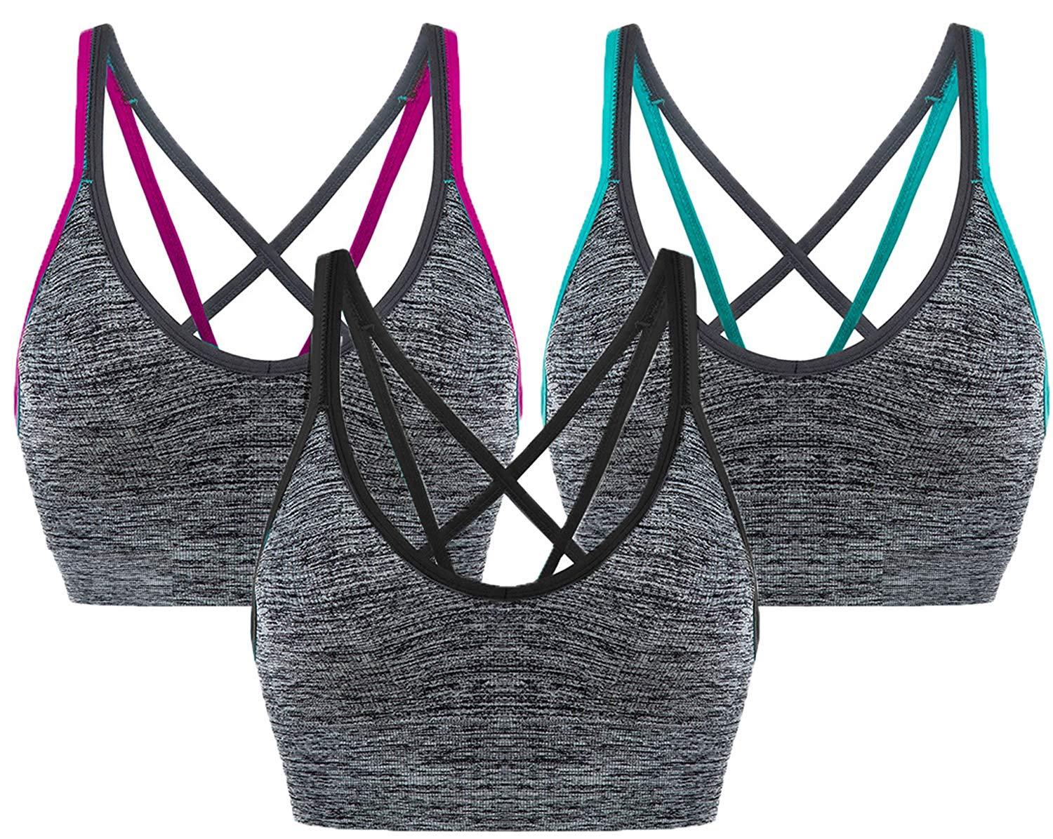 AKAMC Women's Removable Padded Sports Bras Medium Support Workout Yoga Bra 3 Pack