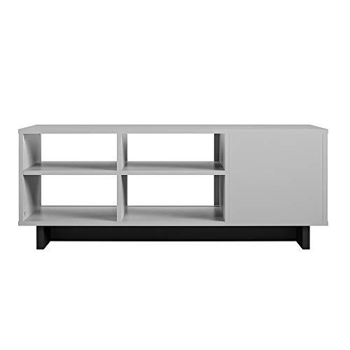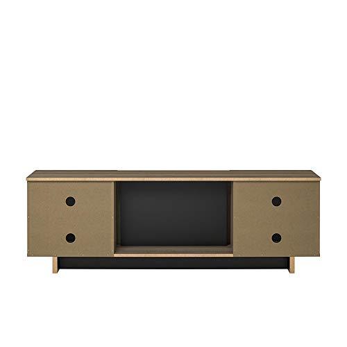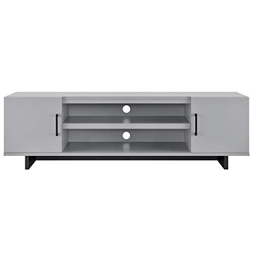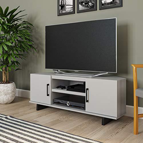 • The TV Stand ships flat to your door and 2 adults are recommended to assemble. The 2 center shelves can hold 20 lbs. each and each shelf behind the doors will hold 15 lbs. Assembled dimensions: 18.03”H x 60”W x 17.13”D