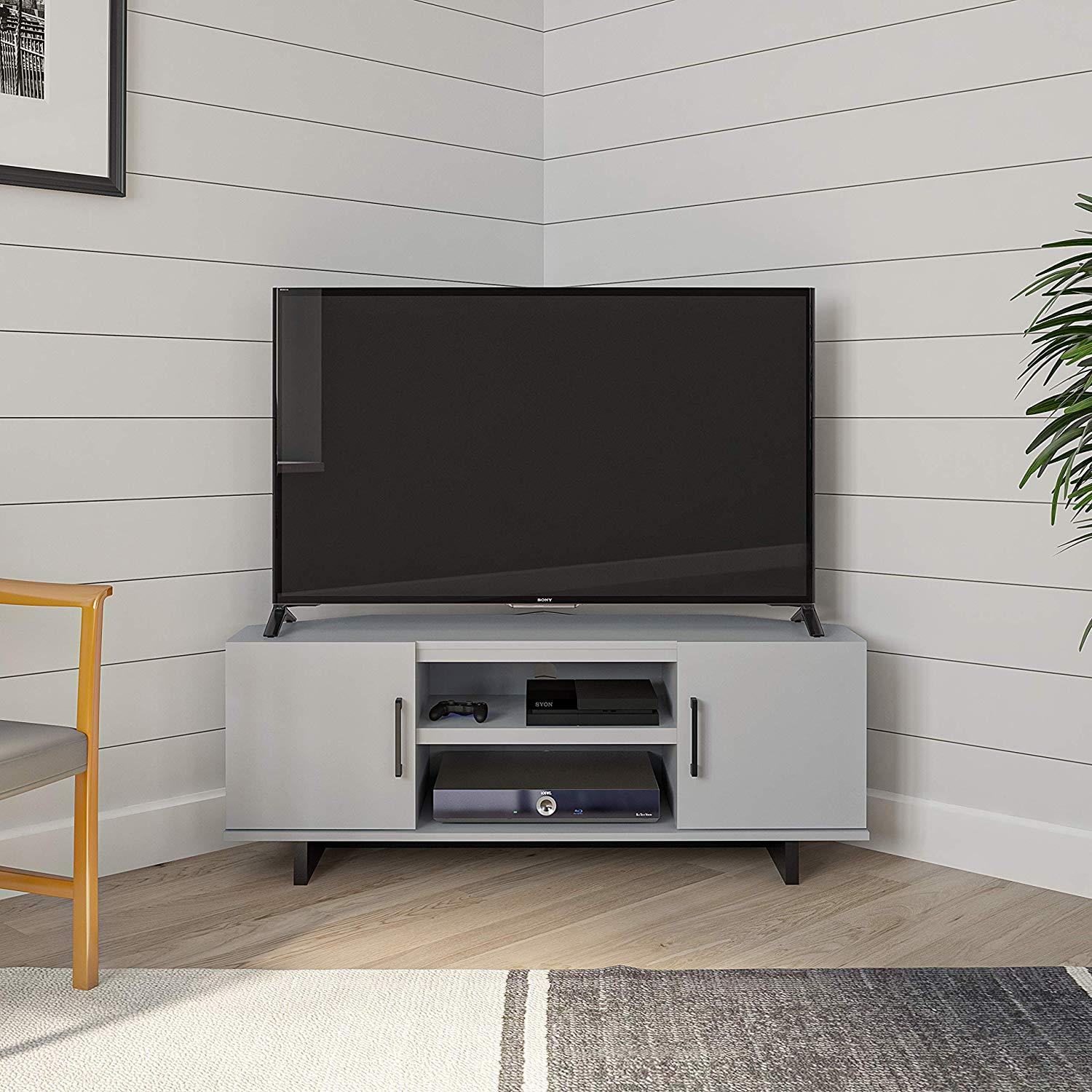 Color:: Dove Gray Corner TV Stand