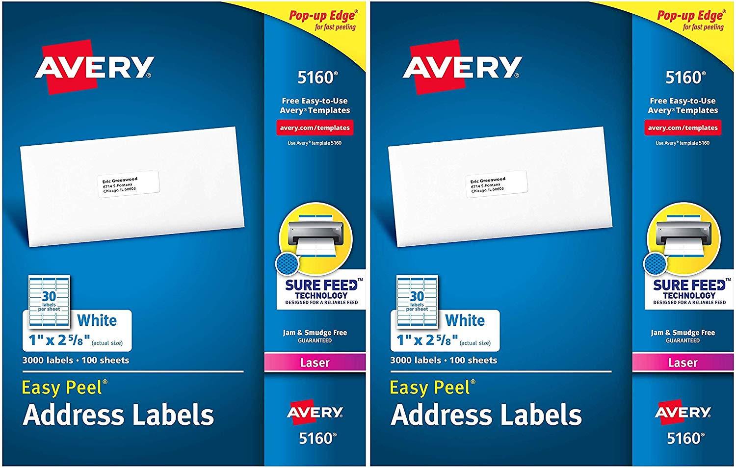 Avery 5160 Easy Peel Address Labels, White, 1 x 2-5/8 Inch, 3,000 Count (Pack of 1) Pack of 2