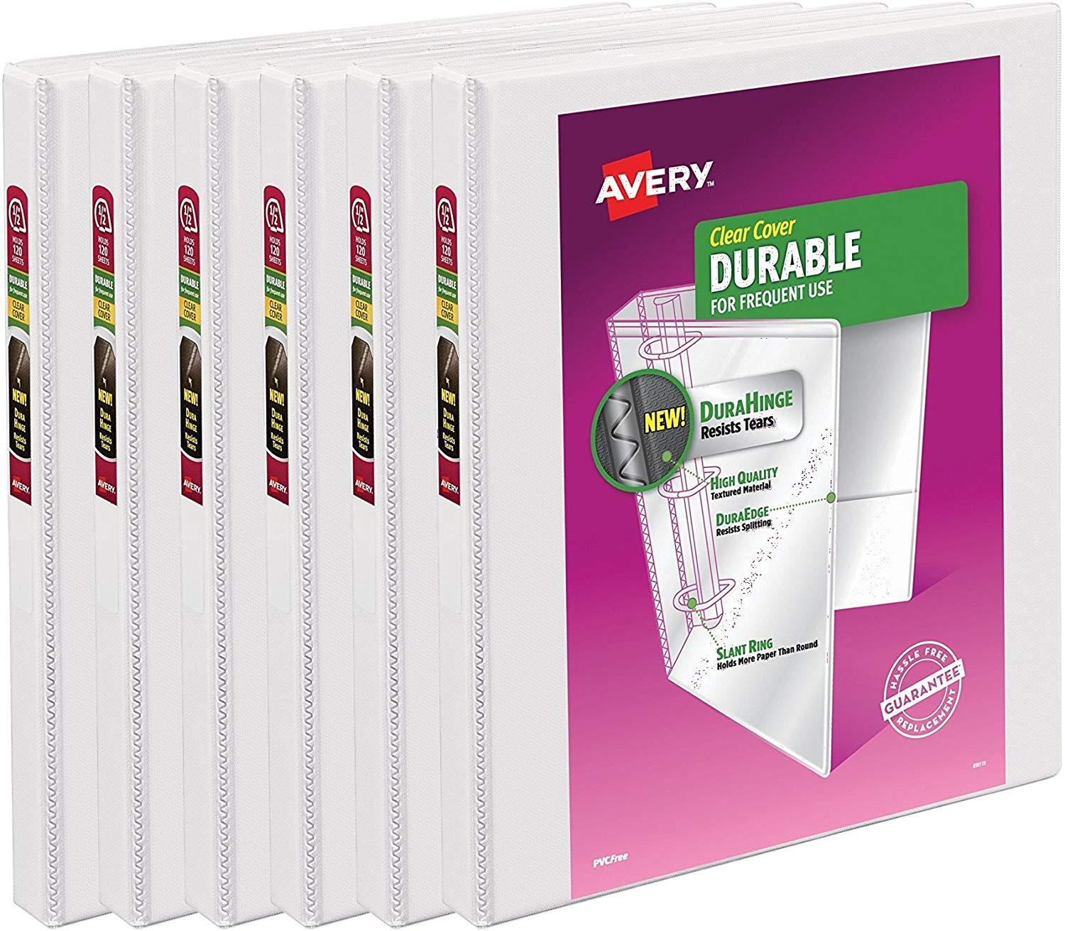 Avery Durable View Binder, 1/2" Slant Rings, 120-Sheet Capacity, DuraHinge, White, Pack of 6 (17002)