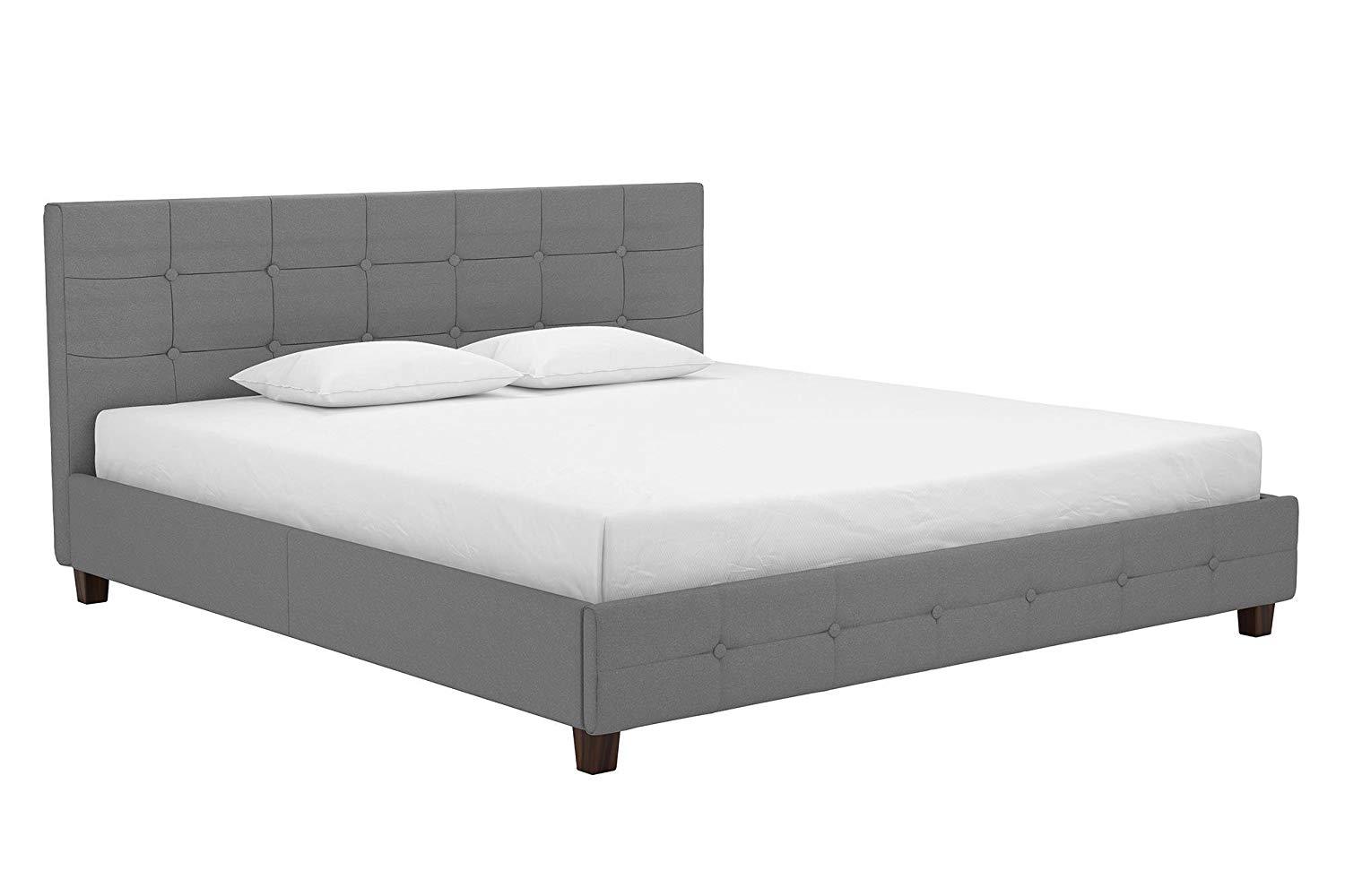 Dhp Rose Linen Tufted Upholstered Platform BedButton Tufted Headboard And Footboard With Wooden Slats, Queen Size, Full, Grey Linen
