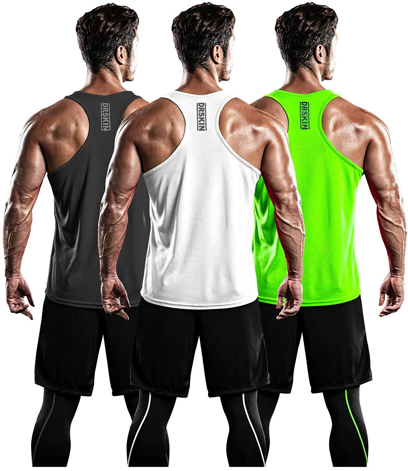 DRSKIN Men's 2~3 Pack Dry Fit Y-Back Gym Muscle Tank Mesh Sleeveless Top Fitness Training Cool Dry Athletic Workout