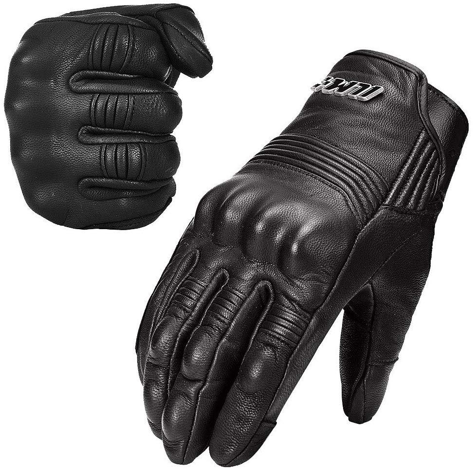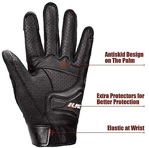 ILM Goatskin Leather Motorcycle Motorbike Powersports Racing Gloves Touchscreen For Men and Women Black (XXL, Black Perforated)