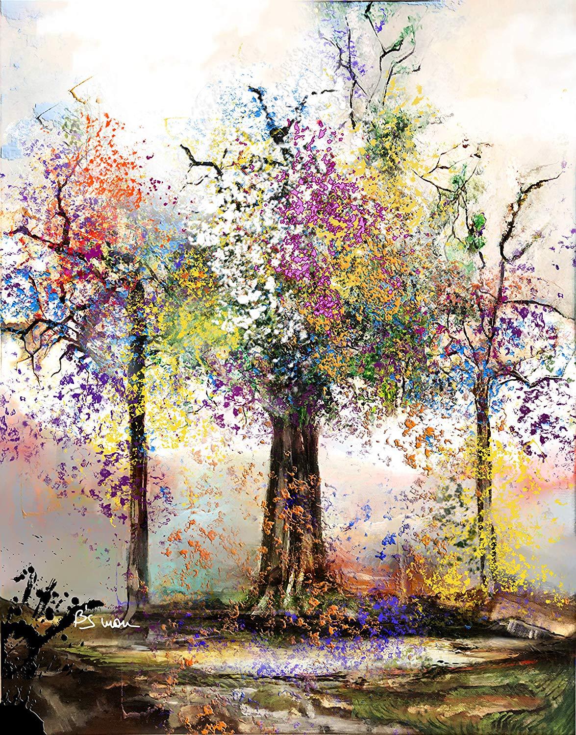 A mixture of oils, acrylics and watercolors are used on top of the mounted image, previously composed with different textures on different types of papers.