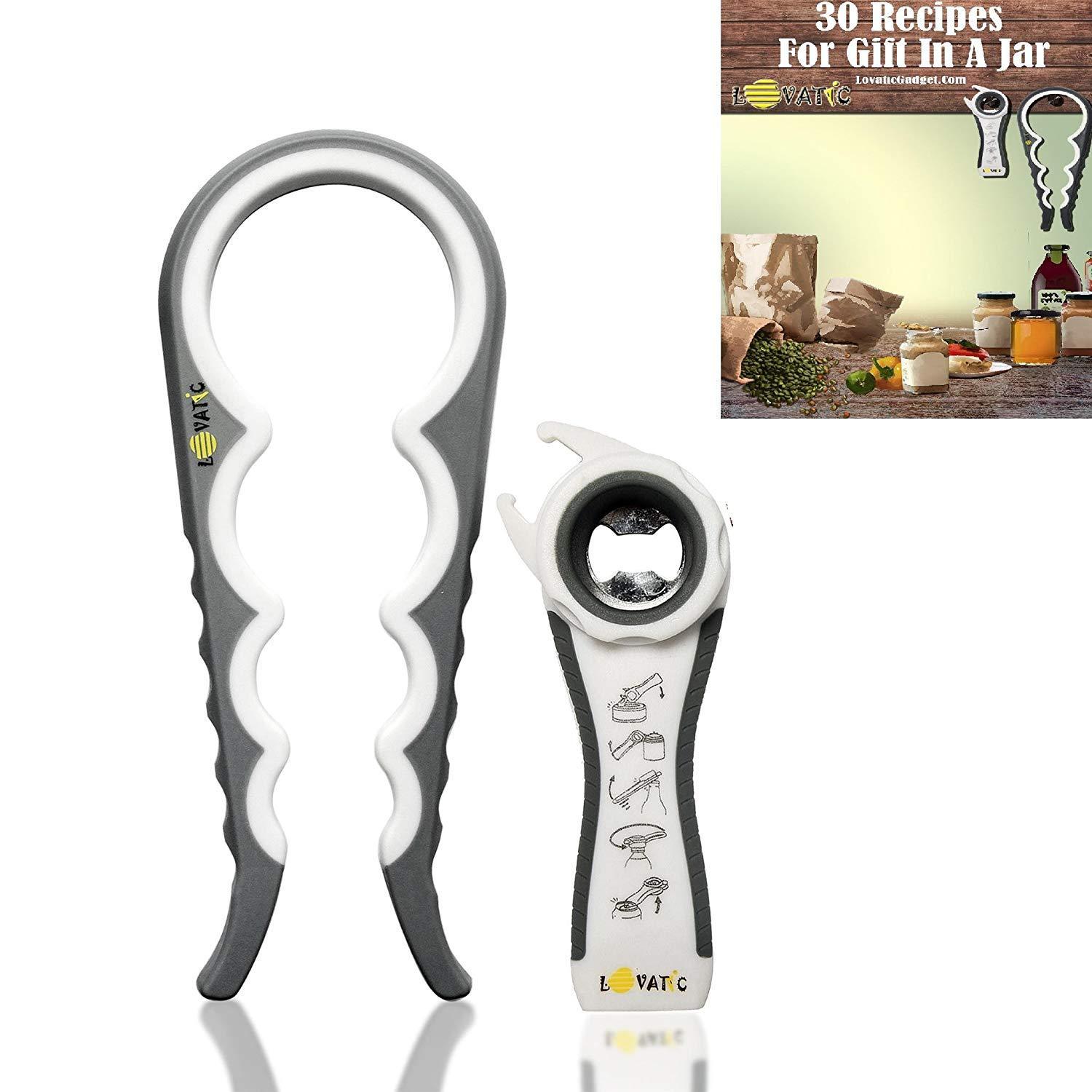 The Lovatic handy kitchen gadgets will come into 2 sets 4-IN 1 Jar Opener which absolutely replace an electric automatic machine in kitchenware cabinet with following advantages: •Support for weak and painful hands •Easy to hold handle •Open regular and vacuum-style glass screw-top jars •Ideal for arthritic hands, arthritis suffers and elderly people •Require small space in kitchen cabinet •Grips bottle and jar lids with rubber surface •Fits most size of jars 5-IN-1 Bottle Opener can open 5 varieties of lids such as soft drink cap, drinking water bottle cap, metallic lid on tins will main functions as following: •Pull Tap Can Assist •Jar Seal Breaker Claw •Bottle Cap Grip •Bottle Opener •Pop Top Can Assist Both versatile kitchen gadgets are very sturdy and durable which most of our customers recommended to replace electric tool and found more effective than the traditional triangle jar openers. Eliminate unnecessary tools, hassle free opening with minimal movements, extremely safe FREE E-BOOK with 30 meal recipes for your family with full information about nutritional fact needed. LIFETIME SATISFACTION GUARANTEED! Being A Part Of Our Family By Clicking The ADD TO CARD Button Right Now And Get Your LOVATIC Jar Opener and Bottle Opener!