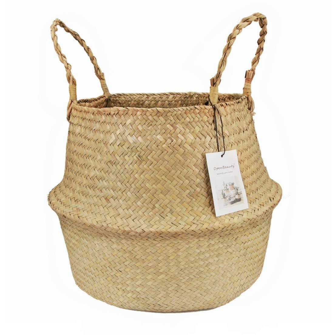 Natural Seagrass Belly Basket with Handles Seagrass Planter for Fig Indoor Plants