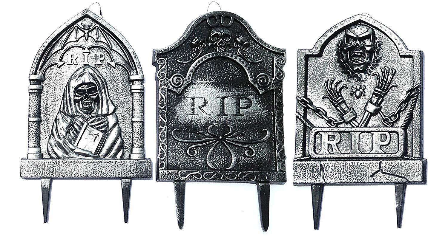 Paper and Presents Halloween Tombstone Gravestone Decor Creepy Cemetery Halloween Party RIP Haunted House Decoration (Pack of 3) Made of Heavy Plastic