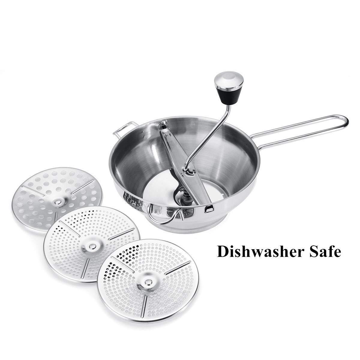 Stainless Steel Food Mill Mouli Ricer with 3 Milling Discs,Dishwasher Safe