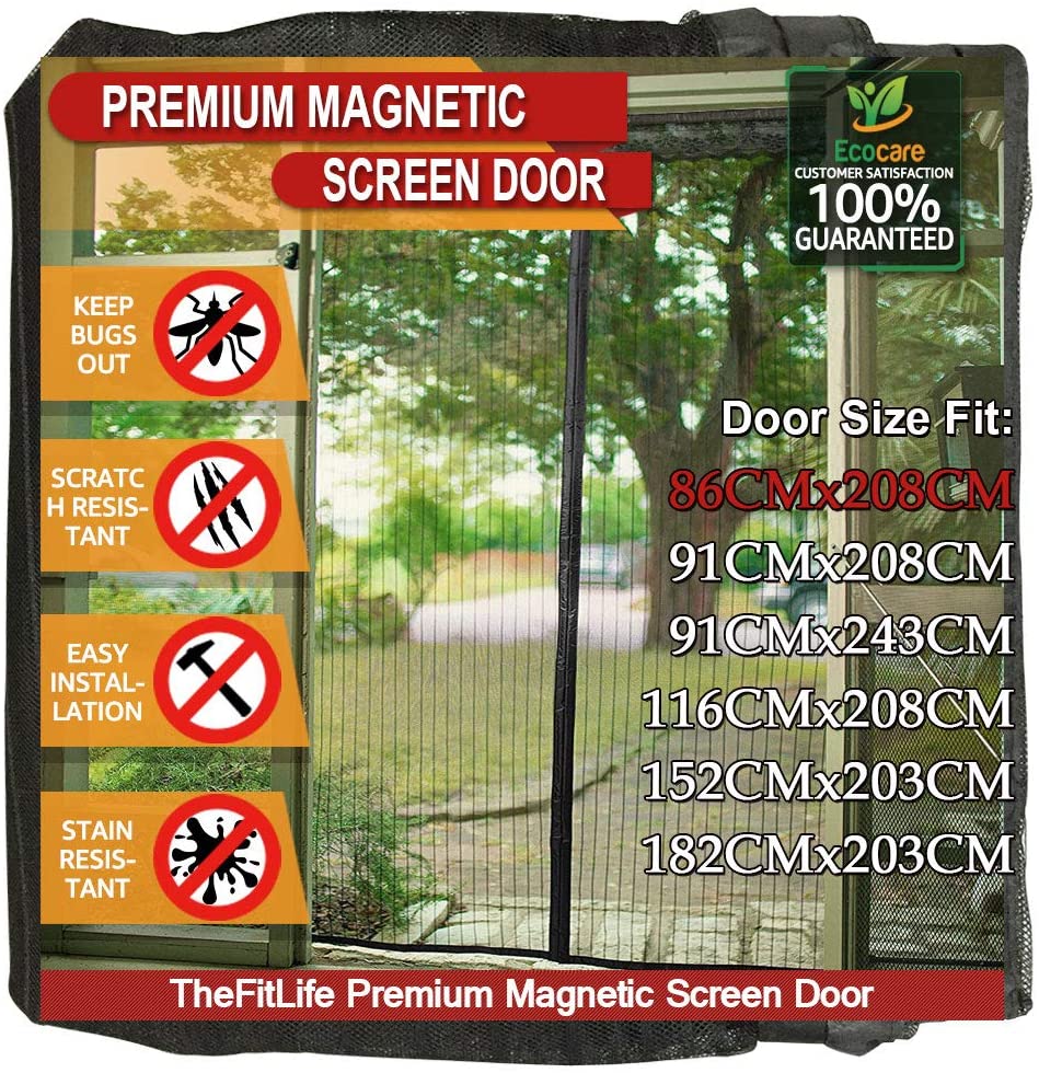 TheFitLife Magnetic Screen Door - Heavy Duty Mesh Curtain with Full Frame Hook and Loop Powerful Magnets that Snap Shut Automatically - Black 36"x83" Fits Door Size up to 34"x82" Max